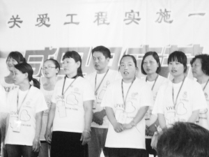 在这次活动中,志愿者表演了精彩的节目(如图)后,向“星妈妈”送上了康乃馨和平安果。济仁慈善基金会为她们发放了有关自闭症教育的书籍和光盘。爱心企业还为她们赠送了净水器等日用品。
