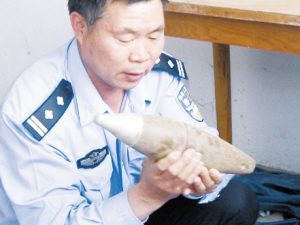 废品收购站附近的村民告诉记者,抗日战争时期,附近的营岗寨曾驻扎过一批日本兵,这枚炮弹很可能是那时候日本人留下的。