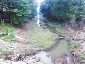 5月15日上午,在市水利局有关人员的指引下,记者来到流沙河的市区八一大道北段洼冲沟段。站在横跨洼冲沟的一座桥上,向远处望,只见河道内胡乱堆了些杂物,有生活污水排入河道。河岸上,一块写有“禁止乱倒垃圾”的牌子周围堆满了生活垃圾。