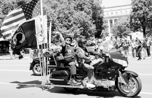 当日,一年一度的“滚雷”摩托车大巡游在华盛顿举行,今年是这项活动举办的第二十六个年头,以纪念在战争中失踪及阵亡的士兵。摩托车队的成员主要由全国各地的退伍军人组成。新华社记者 方喆 摄