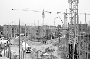 本报讯 上百名工人正忙着绑扎钢筋、浇筑混凝土……十几辆运输车辆在工地上穿梭,装卸建筑材料,忙得不亦乐乎。这是5月29日记者在周口市川汇新区金域华庭项目工地看到的忙碌而紧张的施工场景。与别处不同的是,这里的施工气氛更显严肃,戴安全帽的工人作业认真,楼上楼下来回走动的管理人员同样认真,发现一点“蛛丝马迹”就立即通知工人,大家的认真劲儿让人感到这里不是一般的建筑工地,而是一处打造精品建筑的“战场”。