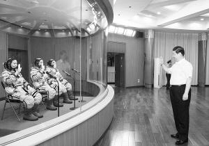 11日中午,习近平在酒泉卫星发射中心听取了天宫一号与神舟十号载人飞行任务有关情况汇报。习近平充分肯定各参研参试单位和部门为完成神舟十号载人航天飞行任务所做的大量准备工作。习近平说,这次任务飞行时间长,试验难度大,面临一系列新的挑战和考验。希望同志们牢记使命、坚定信心、周密组织、科学实施,确保实现既定的任务目标,努力夺取载人航天事业发展新胜利。