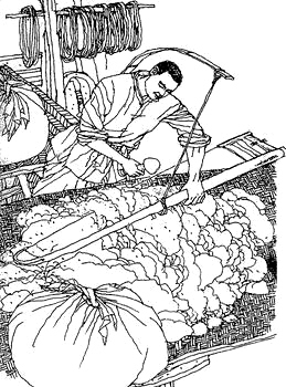 “弹花不仅是个技术活,而且还是个体力活,一天到晚腰弯得像马虾,躺到床上,身体就像散了架,真不是我这把年纪干的活,现在还落下一身病,我再干两年就把这生意给转了。常年在飞絮中生存,肺里面吸满了毛细纤维能不得肺病吗?”王元宝说着话,喉咙眼儿里还不时地咳嗽着。