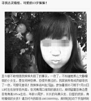 1.微博寻找13岁妹妹