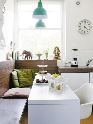 一般来说,有窗户的地方会很容易出现墙角,只要在墙角处搭配三角形隔板,放上一盆花或一样装饰物件就能点亮空间;而一些向外凸起的尖角处,可依墙角设置小桌椅,再装饰可爱的吊灯或壁灯,文艺范便呈现出来。
