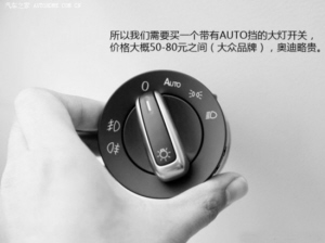大家都知道,原厂没带自动大灯的车型,大灯开关一定不带AUTO挡,所以一般情况下,我们需要另购一个带有AUTO挡的大灯控制开关。但万事无绝对,目前一些厂家生产的自动大灯控制模块可以默认关闭挡为AUTO挡,从而为车主省下购买大灯控制开关的成本,不过我们还是建议大家直接购买一个新的带有AUTO挡的大灯控制开关,这样可以有机会绝对关闭大灯。