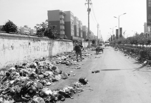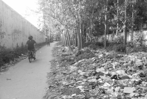 8月12日,有读者向本报反映,称有人向文昌大道周口师范学院西侧路边倾倒建筑垃圾。8月13日上午,记者来到周口师范学院西侧围墙外,发现这里的路面上堆放着不少建筑垃圾及植被垃圾,十分醒目(图三)。附近市民告诉记者,这些垃圾是最近才出现的。