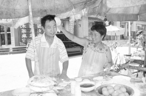 扎摊周口市区文明路与育新路交叉口的烧饼小贩李学升、马崇灵夫妇来自太康县马头镇,两人在此已卖了25年的烧饼。