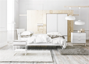 借鉴:白色调装饰搭配原木设计非常亲切和朴实,富有变化的木纹肌理打破了白色空间的单调感,深浅不同的灰度地毯也会给纯白居室增添舒适和温暖。