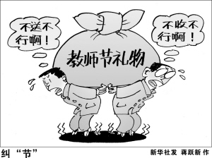 江苏省东台中学的孙老师认为,教师节给老师送礼,应该注重精神层面。“收到孩子们自己制作的礼物,虽然礼轻但情意重,是很大的安慰。指望学生家长送礼改善生活的老师,毕竟是极少数。”