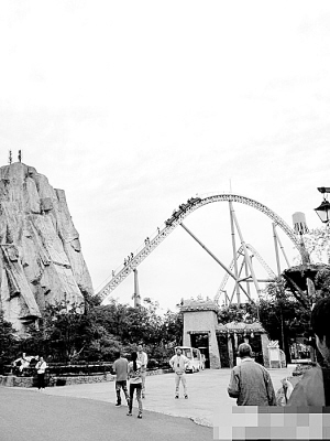 本报综合消息 10月19日,上海欢乐谷“蓝月飞车”过山车再次发生故障,多位游客被卡在了上面。事发后,园方对传感器进行了更换,调试设备后,该项目恢复正常运营。9月28日,欢乐谷过山车也曾发生“卡壳”,28位游客被困半空。据游客介绍,由于过山车“卡壳”,不少被“卡”在半空中的游客只得从旁边的设备安全梯步行下来(如图)。