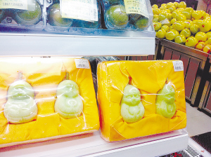 电视剧《西游记》里的人参果和现实中我们平时吃的人参果有一个最大的不同,那就是人家的那个是人形的,我们的那个像瓜一样。如今,人形人参果也落入了凡间——周口市区某大型超市把这种外形酷似人形的“神仙供品”摆到了货架上,两个人参果售价约70元人民币。记者昨日看到,这种人参果是合掌念经的娃娃造型,引来许多市民驻足观奇。