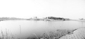 我们放眼望去,只见河面中央,一位钓者正撑着一叶扁舟,在夕阳下悠然前行。此情此景,老门潭恬静得像个少女。不过,汛期的老门潭可没有这么温顺,它会像一头发了疯的野兽,直撞老门潭大堤……