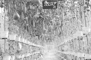秋冬时节,到处都是衰飒景象,但在这家生态示范园里,太空辣椒、太空西红柿、太空茄子等10 余种蔬菜依然长势喜人。工作人员告诉我们,貌似香炉的南瓜叫太空香炉瓜、黄色的番茄叫太空黄钻、五彩的辣椒叫太空五彩椒……