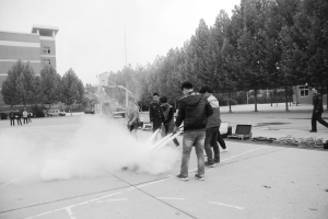 为进一步加强学校消防安全宣传教育工作,提升学校消防安全管理,增强学生消防安全意识和自防自救能力,近日,淮阳一高与淮阳县消防大队在该校开展灭火和疏散演练活动。(张强 摄)