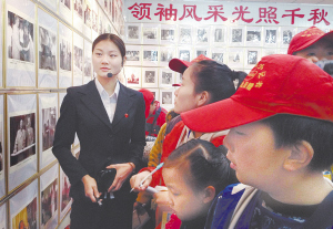 “快看,这里有好多毛主席像章呀!”仪式结束后,一踏进红色收藏馆门口,小记者就发出了阵阵惊叹声,眼前不计其数的毛泽东像章让他们目不暇接。大家议论着,并围在讲解员的身边,聆听这些像章背后的故事。在讲解员的倡议下,小记者们面对毛泽东塑像默默三鞠躬,表达了对老人家的无限缅怀之情。