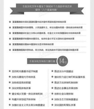 “值得注意的是,这次全会提出要使市场在资源配置中起‘决定性’作用,以前的提法是‘基础性’作用。对市场作用提法的升级,凸显了中央坚持市场化改革方向的决心,打消了一些人对中国未来发展改革方面的疑虑,预计未来经济体制改革将有一系列新的重大突破。”王军说。