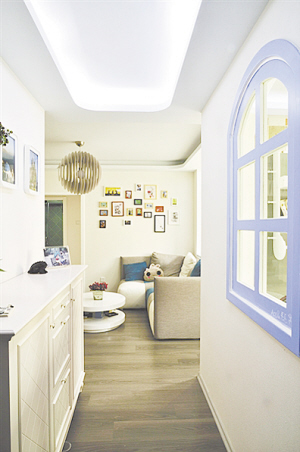 提醒:不规则空间应该根据人进门后走道流动的路线,在这个路线上对空间进行分割。对于狭长的走道来说,如果装饰风格定位比较明确,就可以结合顶面及墙面装饰让走道成为一个独特的装饰空间,例如做成照片墙、画报墙都是比较流行的装饰方法。“L”户型的转角处还可以设计为储物空间,解决客厅储物功能不足的问题。