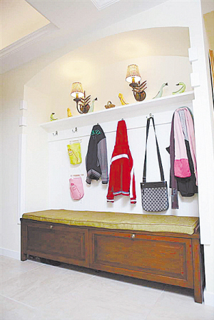 8进门处的墙边,可以做一个简单却十分实用的更衣区。