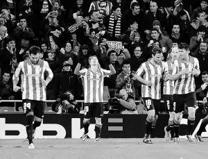 毕尔巴鄂球员穆尼亚因(左二)庆祝进球