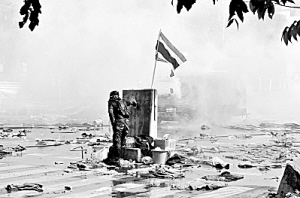 示威者当天再次试图冲破总理府周边设置的水泥障碍物和防暴铁丝网。