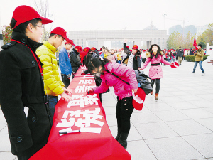 图:周口师范学院青年志愿者踊跃签名