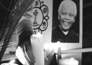 12月7日,在南非约翰内斯堡,民众摆放蜡烛悼念曼德拉。