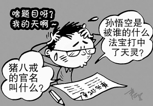 记得小时候读课外书,小伙伴们常会面红耳赤地争论书中的一些知识点,比如《水浒传》里108将的绰号、排位及天上对应的星宿,《说唐》里大隋朝从第一条好汉李元霸到第十几条好汉的排名……争赢了,洋洋得意,争输了,恼羞成怒,而不论喜怒,都会暗下决心,要更发愤地记住那些好汉、神佛、妖精的名号及所使兵器。大家这么热情,一个重要原因似乎是,这不是课堂上要考的,若当年的老师像福州这位老师一样正儿八经地出试卷考试,估计小伙伴们又都会觉得索然无味了。
