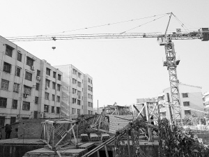 本报讯 近日,市民张先生拨打本报新闻热线称,位于周口市区交通大道与文明路交叉口西侧的原周口市外贸局家属院内,有一施工用的高空塔吊闲置多年,起风时,偶尔会有物品从随风旋转的塔吊上落下,使得周边居民每天进出提心吊胆。