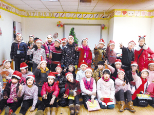 22日上午,位于市区文明路与育新路口的周口优尼卡外语学校张灯结彩。9时30分许,在3号教室,舞台中央圣诞树闪烁着神秘的光芒。因为参加活动的小记者较多,联欢活动分3场同时进行。会场里早已坐满了前来参加活动的小记者和家长们。