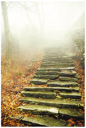 浓雾变幻着,一会儿化做了凉风,一会儿变成了小露珠,沾在我的发梢上,沾到我的睫毛上。我轻轻合上眼,清凉的感觉使人心旷神怡,经雾水的洗礼,我似乎明眸含“泪”了。