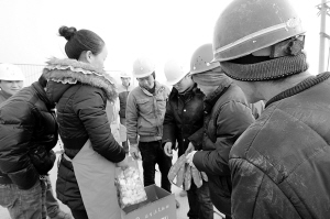 “工地上现有工人近150人,天南海北哪儿的都有,太感谢你们了,要不是你们来送饺子,我都忘了今天是冬至了。”看着领到手的饺子,四川籍农民工赵敏高兴地说。