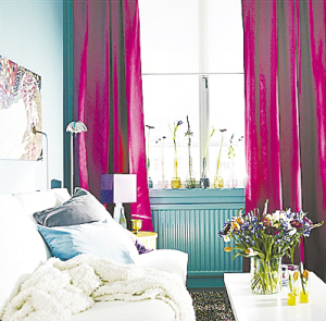 借鉴:对比色装饰是常见的搭配方法。搭配要注意房间的功能,例如在卧室不宜使用过于激烈的色彩,以温和、和谐的搭配为宜。