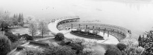 晨雾弦歌:该景点主体为圆形广场,通过两个不对称的弧形廊架与北部堤顶路对接,可达性好。宽阔的开敞空间为晨练、表演、极限运动等多种形式活动的开展提供了场地;
