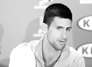 当日,塞尔维亚选手焦科维奇出席在墨尔本举行的2014年澳大利亚网球公开赛赛前记者会。