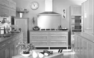 射灯、吸顶灯、操作区灯,厨房里的灯光除了满足烹饪时的基本照明需求,还是使整个空间看起来更具活力的点睛之笔。一般来说,厨房灯光分为两部分,一是整体照明,另一个则是局部照明。内嵌在吊柜下的白炽灯,不仅节约空间,也方便拿取所需的配料作料,另外现在配备有灯光的抽油烟机,则方便在烹饪时看清锅中菜的色泽,掌控火候,确保菜品的色泽诱人。