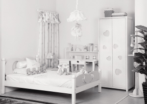 我接着了解到,明亮清晰的灯光也是儿童房必备的条件,这样能让房间温暖、有安全感,有助于消除孩童独处时的恐惧感。但是主灯的照明度不要太强,要柔和。小表外甥的房间就选择了一款玻璃罩朝上的灯具,使光通过磨砂灯罩的过滤照射下来,这样柔和了许多,也能达到合适的明度。灯具式样的选择上可活泼有趣些,表姐为小表外甥选的是可爱的五角星造型,很能营造儿童房欢乐的感觉。最后,表姐向我强调说,儿童房过一段时间还要进行适当的调整以适应不同年龄段的需要,同时每个阶段的儿童房设计中还要注意留白,你看进门的那堵墙就空着,现在是做小表外甥的涂鸦墙,将来可以随他自己来布置,给他一些发挥创意的空间,便于成长。