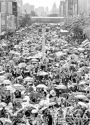 民主党前议员伊萨叻·颂猜带领的一支示威者队伍,12日占领了曼谷叻抛路口。叻抛是曼谷的一个老城区,商业发达。