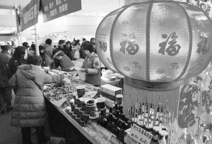 1月22日,市民在北京五棵松年货大集上选购年货。