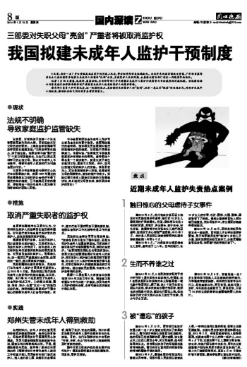 我国拟建未成年人监护干预制度
