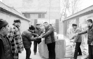 昨日,鹿邑县贾滩镇西高庄村的45位70岁以上“福星”领到了该村“帮扶理事会”发放的100元现金、食用油、大米、花生等慰问品。据悉,“帮扶理事会”是由该县政协委员吕合法及在外工作的30多人自发组织成立的。