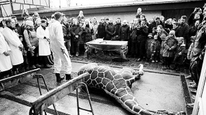 丹麦哥本哈根动物园2月9日处死一头身体无恙的长颈鹿,并把部分鹿肉送给老虎和狮子做大餐,原因是这头长颈鹿近亲繁殖,不符合欧洲动物园管理机构规定。截至哥本哈根时间8日晚,数千名网民在多家网站上签名请愿,呼吁拯救这头被判“死刑”的长颈鹿。但网友的请愿并没有打动哥本哈根动物园,这头长颈鹿9日早晨按原计划被处死。