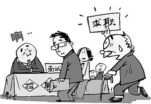 日前,在西安市举办的一次招聘会上,除年轻求职者外,还来了一些白发苍苍的老人,他们大多是为子女找工作。今年已经73岁的郭师傅说,他在一家单位看大门,可35岁的儿子失业几个月了,这让他很着急。