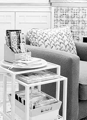 三口之家,难免有些杂物,需要巧妙利用玄关、视听等区域进行收纳,采用明快的色彩,强调整体设计及线条感,就是打造春日客厅简洁、舒适的关键。要兼具收纳和装饰,那就得很好地利用隔架单元,选择清新感觉的原木隔板可以在客厅里面创造出一面独立的储物墙,配合不同颜色的储物盒,便可以混搭出各种风格,创造出极具个人风格的客厅。杂志、书籍等形状规整的物品就可以直接摆入单元格中,而类似零食、水果、零钱这类杂物就可以通过收纳盒来分类整理,然后再归置到隔板上。注意,比较重的书籍杂志不适宜放在隔架单元的上层,可以利用底层空间来存放。