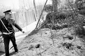 “这些人的胆子也太大了,屋内就有保安值班,他们竟把售楼处门前的两棵铁树弄走,还挖走10棵海棠。”昨天上午,阳光花墅物业主管王建朴说起售楼处门前花卉被偷一事,气愤不已。