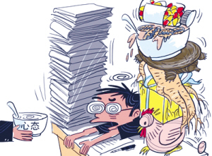 高考前夕,除去补习之外,一日三餐也是家长格外操心的,一位考生介绍:“我妈之前每天给我炖一只鸽子,说补脑,最近又开始给我狂吃海参和甲鱼,还买了一堆保健品逼我吃,每天一大把。从过年到现在我都胖了26斤了,觉得自己现在特别肥蠢,真不知道高考结束后得胖成什么样儿。最重要的是:万一考不好,我妈花的这些钱和心思,不是全都浪费了吗?每天被逼吃补品的时候,我的心里都翻江倒海的。”