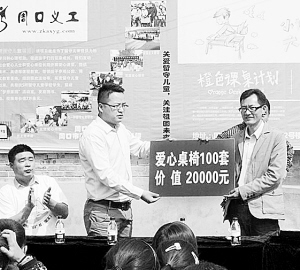市义工委员会秘书长展翱介绍,本次爱心桌椅捐赠活动是他们开展的“弘扬社工精神,服务困境人群”系列活动之一,之前围绕该主题他们分别去敬老院、福利院看望了老人和孤残儿童。