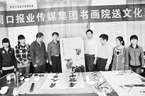 4月10日上午,由周口报业传媒集团书画院组织的送文化到基层活动深入到沈丘县纸店镇二中,书画家现场挥毫作画、写字,为该校师生送去了精神盛宴,使广大中学生近距离接近艺术,领略了祖国博大精深的文化底蕴。记者 韦伟 摄