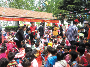 4月10日,太平洋寿险公司孙爱梅经理召集辖属业务部门人员参加了由项城爱心联盟自发组织的以《“爱”在项城》为主题关爱留守儿童公益活动,为官会徐庄小学留守儿童捐献了书包等文具。
