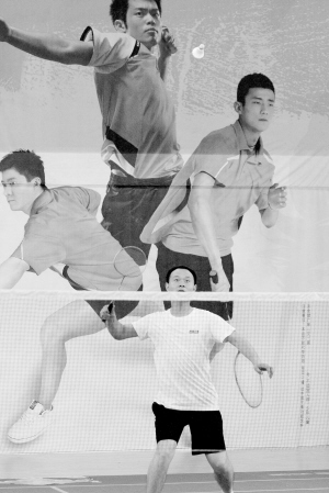 走进羽毛球馆,看到的是选手们奋力拼杀的场景。只见一名队员高高地将手中的羽毛球抛起,另一握着球拍的手将还在空中的羽毛球打向另一边。羽毛球在空中划出一条优美的弧线,即将落地时,对方队员举拍迎战,向飞来的羽毛球猛击……一局下来,双方早已汗流浃背。